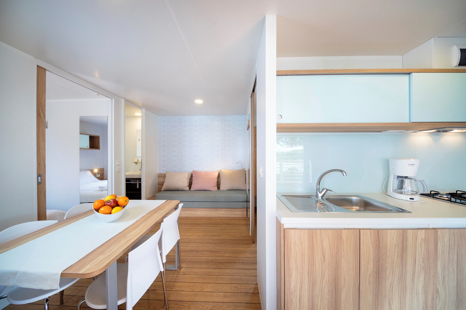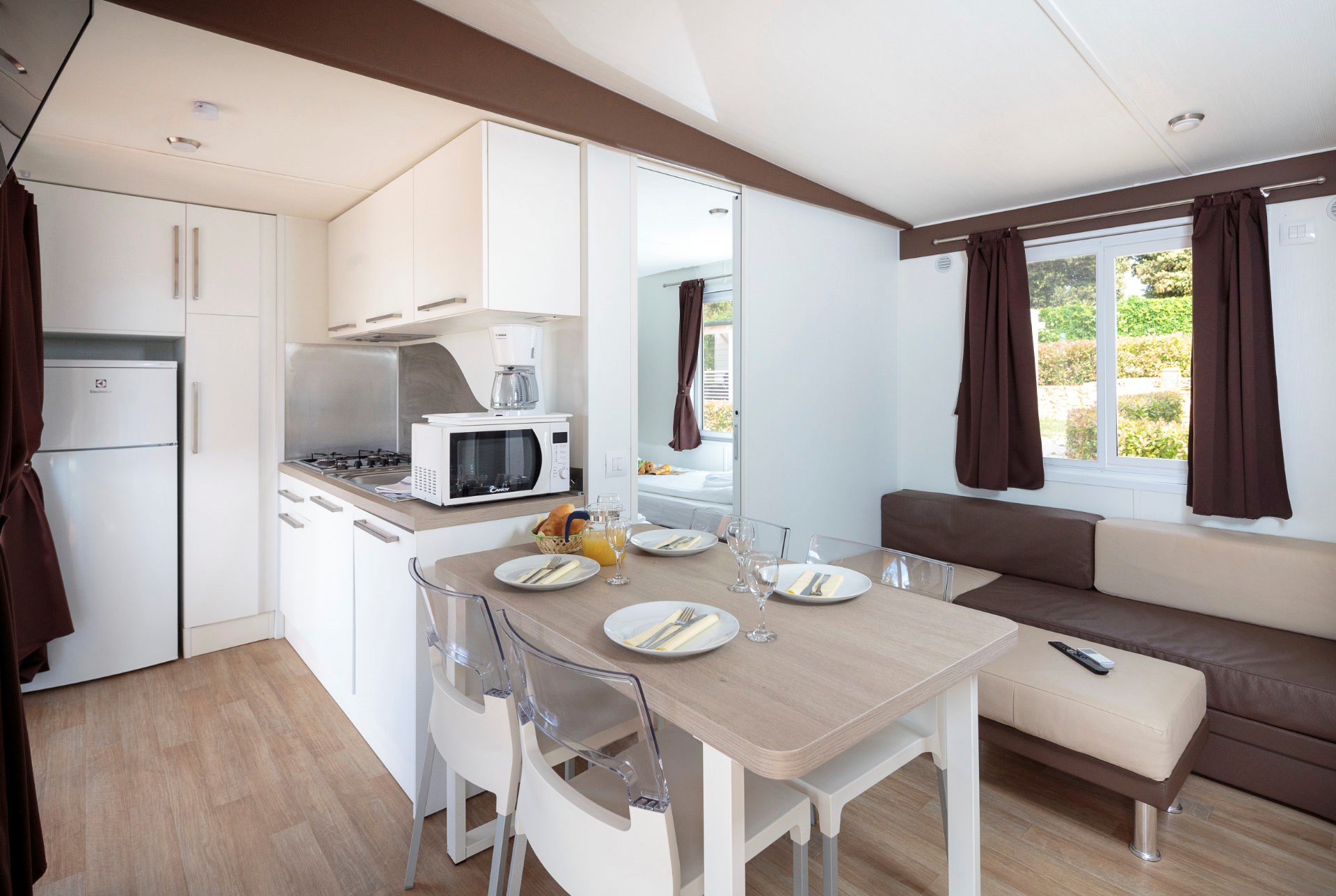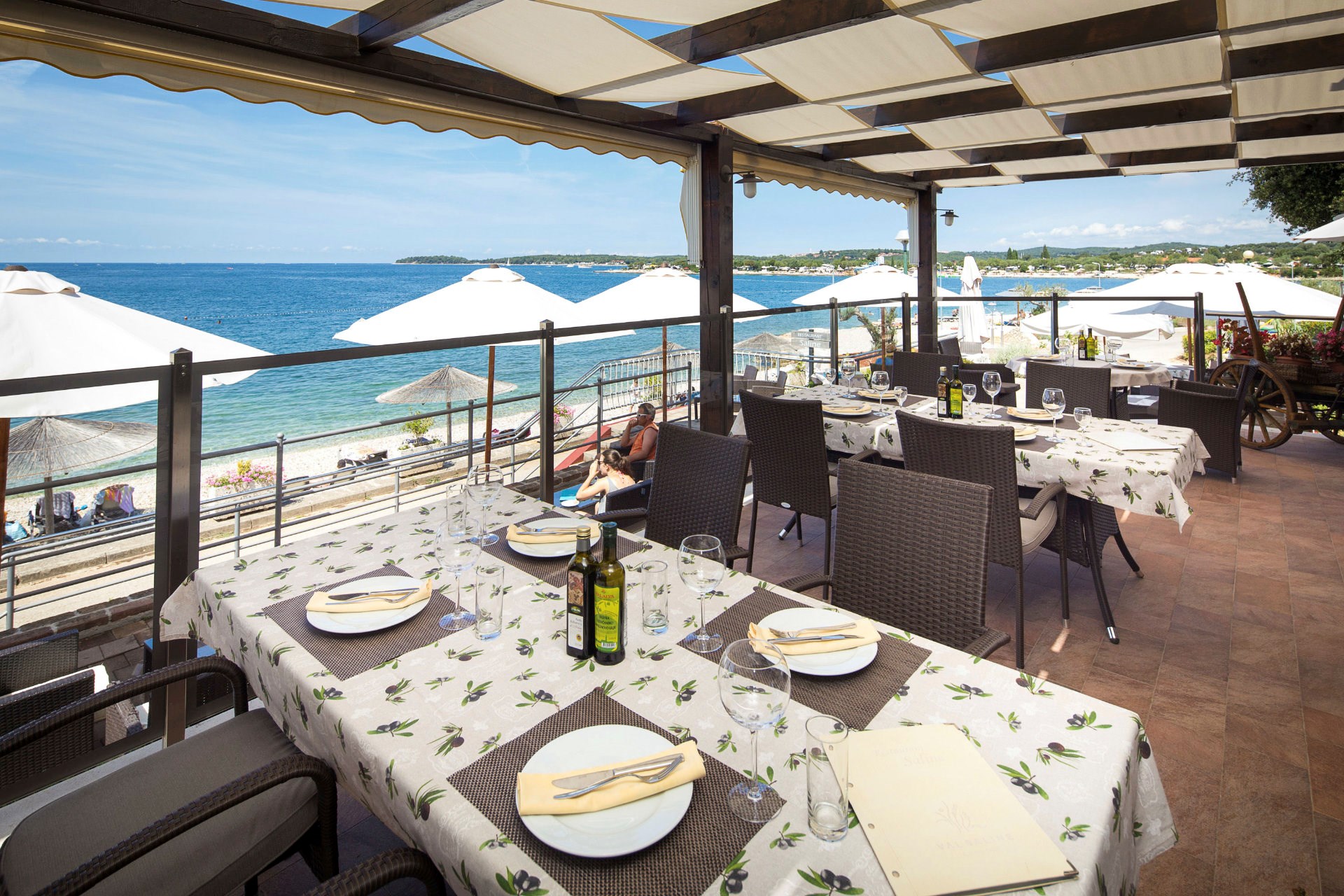Within the campsite, right by the sea with most beautiful sunset view, there is the Saline restaurant with a daily rich offer of various Mediterranean specialties and delicacies. Near the beach and pools area there is a Beach Bar, it is an ideal place to relax with some cocktails, beer from our own production and a great variety of other drinks.